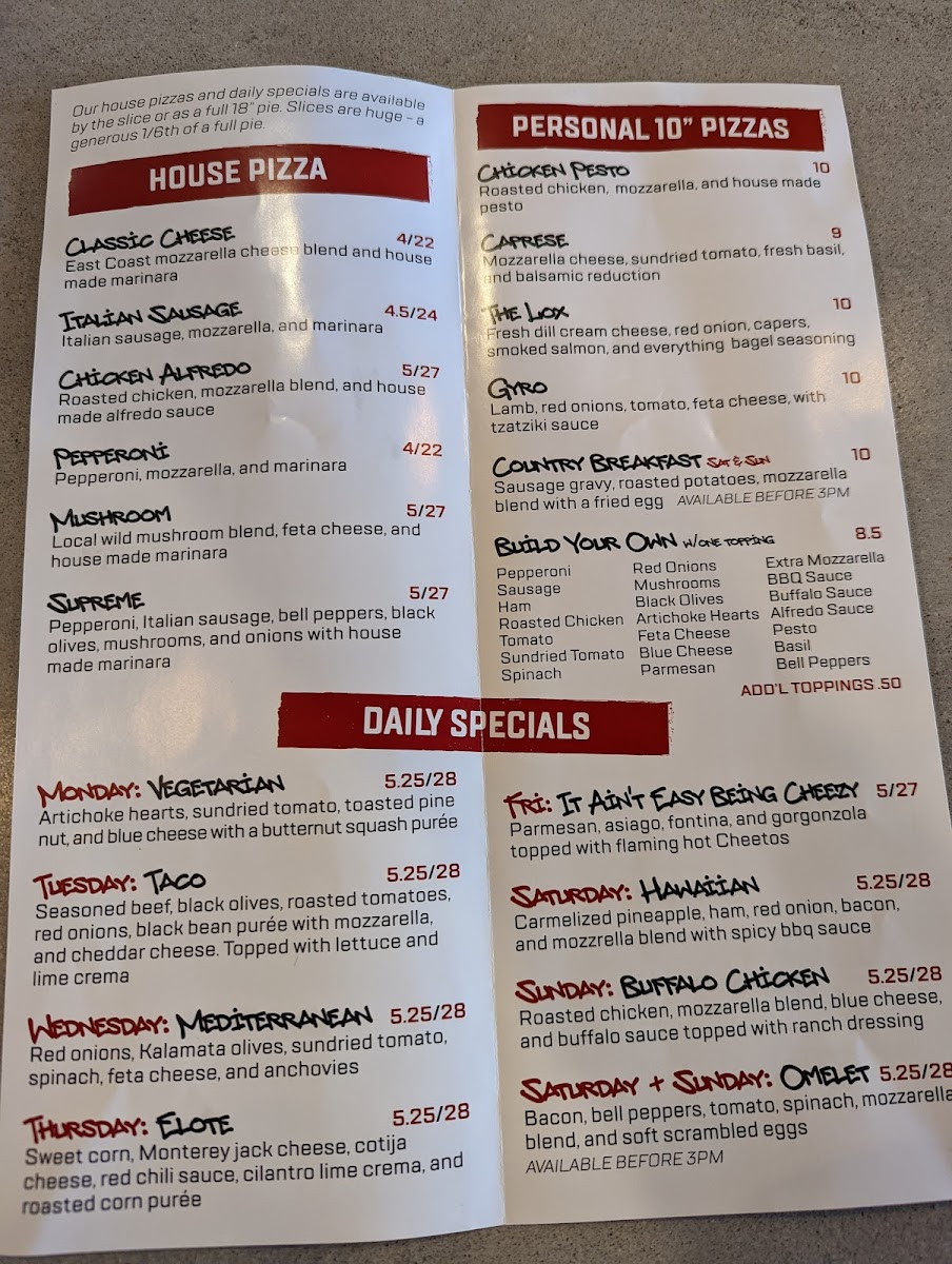 What truly stands out are the individual and customizable pizza options. Guests rave about the rich flavors, particularly the potent pepperoni, and the unique elote pizza, which surprises with its delightful twist. Whether you're in the mood for classic choices like pepperoni and cheese or adventurous flavors like buffalo chicken and gyros, there’s a slice for everyone.